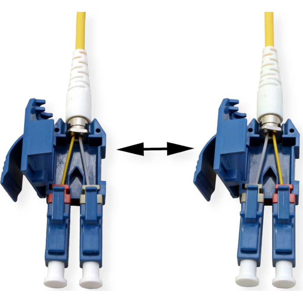 ROLINE Fiber Optic Uniboot LSOH Patch Cord LC/LC in OS2 quality. A uniboot connector is ideal for a high-density environment. Compared to conventional duplex patch cords, the design is more compact and only one cable is used for two lines, which enables usage in a high-density environment. Changing the fiber polarity is easily possible without special tools.