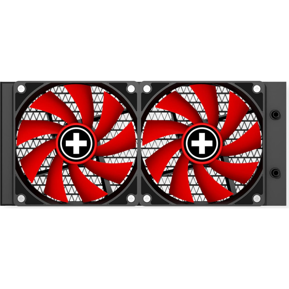 technical particularity: 2 x red RedWing fans with black radiator, black pump head...