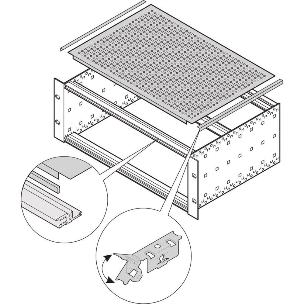 | EuropacPRO cover plate, universal, 84 HP, 475 mmCOVER PLATE EMC 84HP 475D 2PC Can be used with all horizontal rails - For variable positioning of horizontal rails, e.g. for PCBs with special formats - Shielding with optional EMC stainless steel gasket, between cover plate and side wall - Perforation level 58 % |