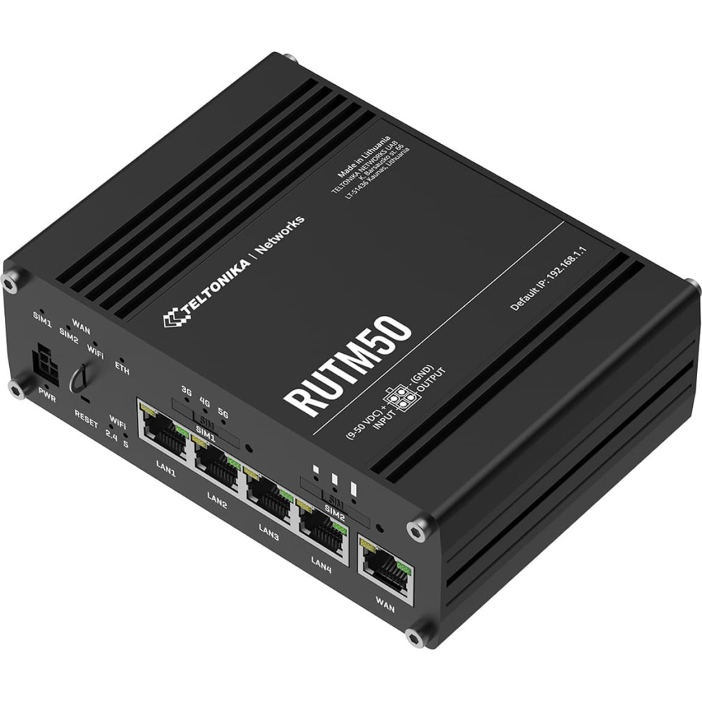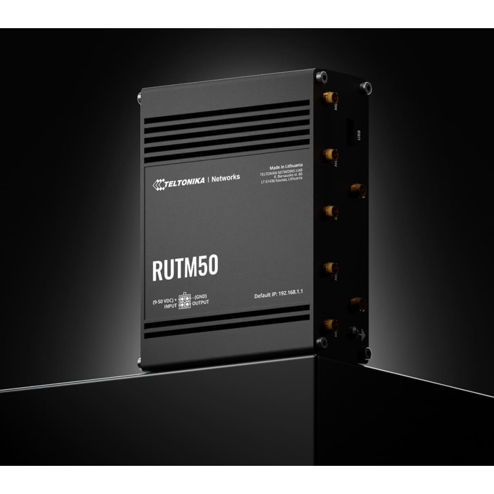 scope of delivery: RUTM50 Router, Netzteil, 4x Mobile Antenne, 2x Wi-Fi Antenne, 1x GNSS Antenne, Netzwerkkabel (1.5 m), SIM Adapter-Kit, QSG (Quick Start Guide)