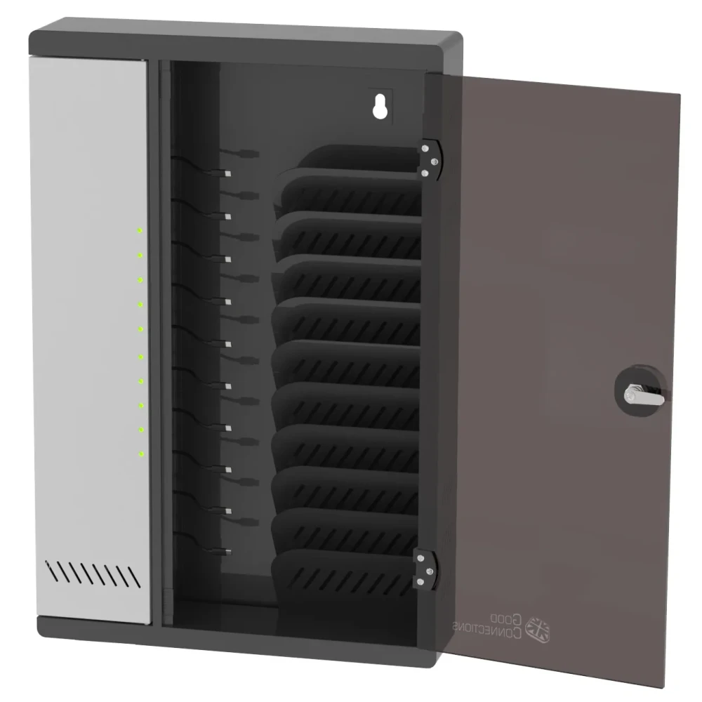 Good Connections® ARIES PRO T10C Wall-Mounted Charging Cabinet for up to 11-inch Devices, USB-C™, 30W Port, PD3.0, Black/Gray