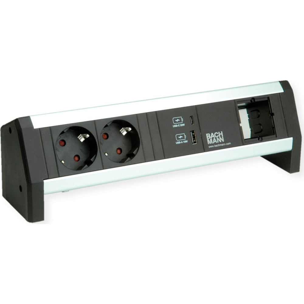 Bachmann DESK 2xprotective contact USB A&C, USB Charger 22W 1xABD GST18