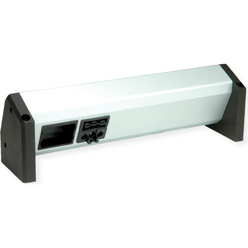 DESK ALU socket strip with enhanced touch protection, 2x black socket outlets with earthing contact 1xUSB A/C 22W Charger 1x empty custom module GST18 power input and output in box