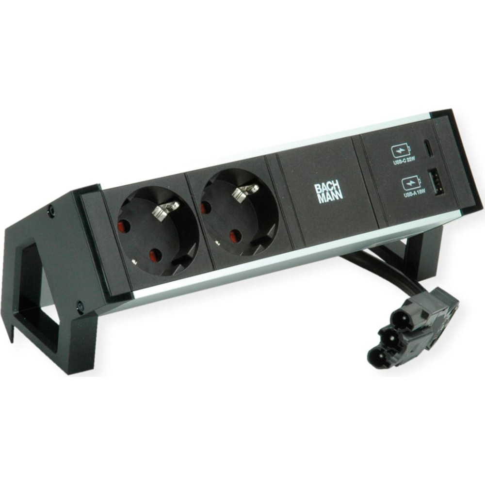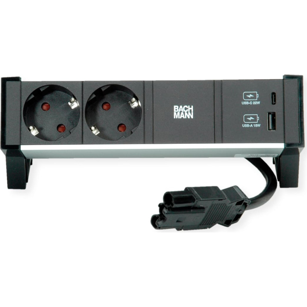 Bachmann DESK2 ALU BLACK 2xprotective contact USB, USB Charger 22W A&C 0.2m GST18