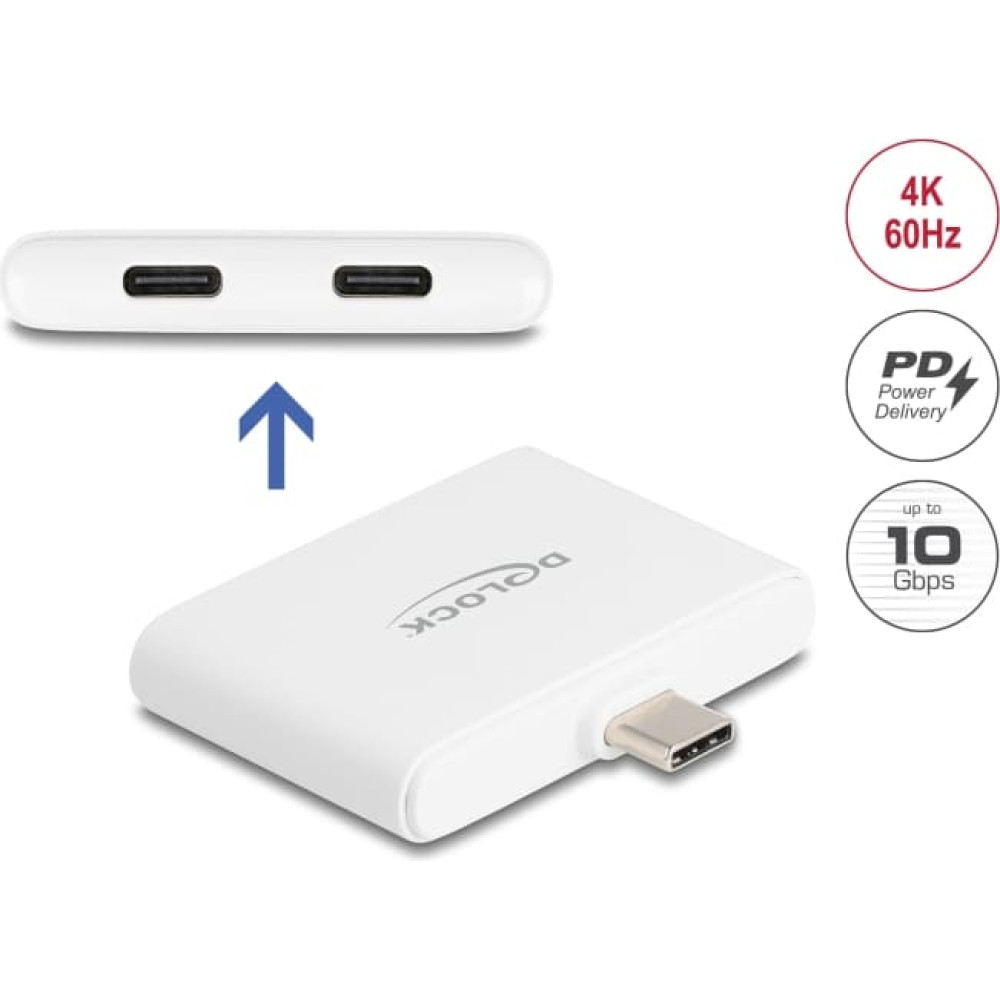 Delock USB Type-C™ Adapter to USB-C™ Data 10 Gbps and Video 4K 60 Hz + USB Type-C™ PD 92 W