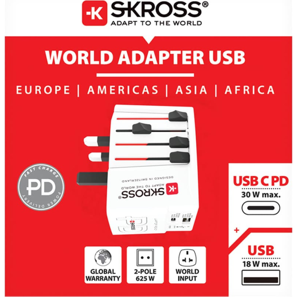Swiss precision and innovation with the aesthetic efficiency and forward thinking of the Swiss design tradition GENUINE - Several design and function patents. UNIQUE - The perfect combination of safety, reknown brands and unique design. SAFETY FIRST - All SKROSS® travel adapters comply with relevant International Electrotechnical Commission (IEC) norms and are certified by renowned independent testing laboratories such as Electrosuisse, TÜV and others. SWISS QUALITY - With product design and engineering made in Switzerland. All adapters fulfill international regulatory requirements in terms of safety and always reflect the highest standards of Swiss quality workmanship.