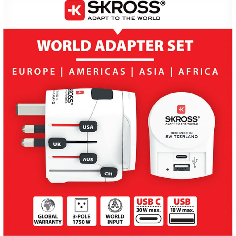 Swiss precision and innovation with the aesthetic efficiency and forward thinking of the Swiss design tradition GENUINE - Several design and function patents. UNIQUE - The perfect combination of safety, reknown brands and unique design. SAFETY FIRST - All SKROSS® travel adapters comply with relevant International Electrotechnical Commission (IEC) norms and are certified by renowned independent testing laboratories such as Electrosuisse, TÜV and others. SWISS QUALITY - With product design and engineering made in Switzerland. All adapters fulfill international regulatory requirements in terms of safety and always reflect the highest standards of Swiss quality workmanship.