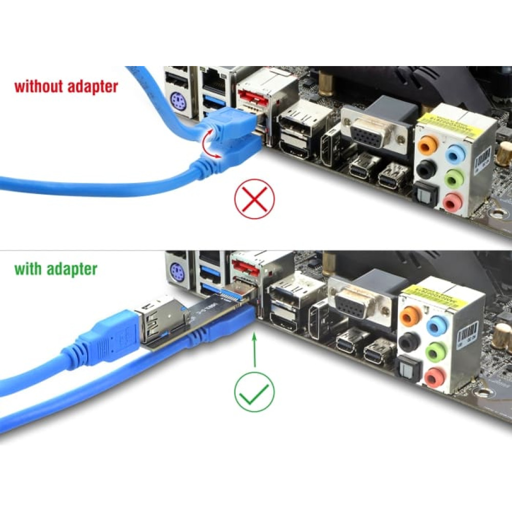 Delock USB 10 Gbps Adapter USB Type-A female to male rotated 90° upwards