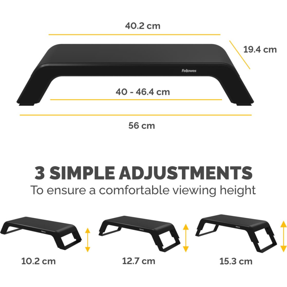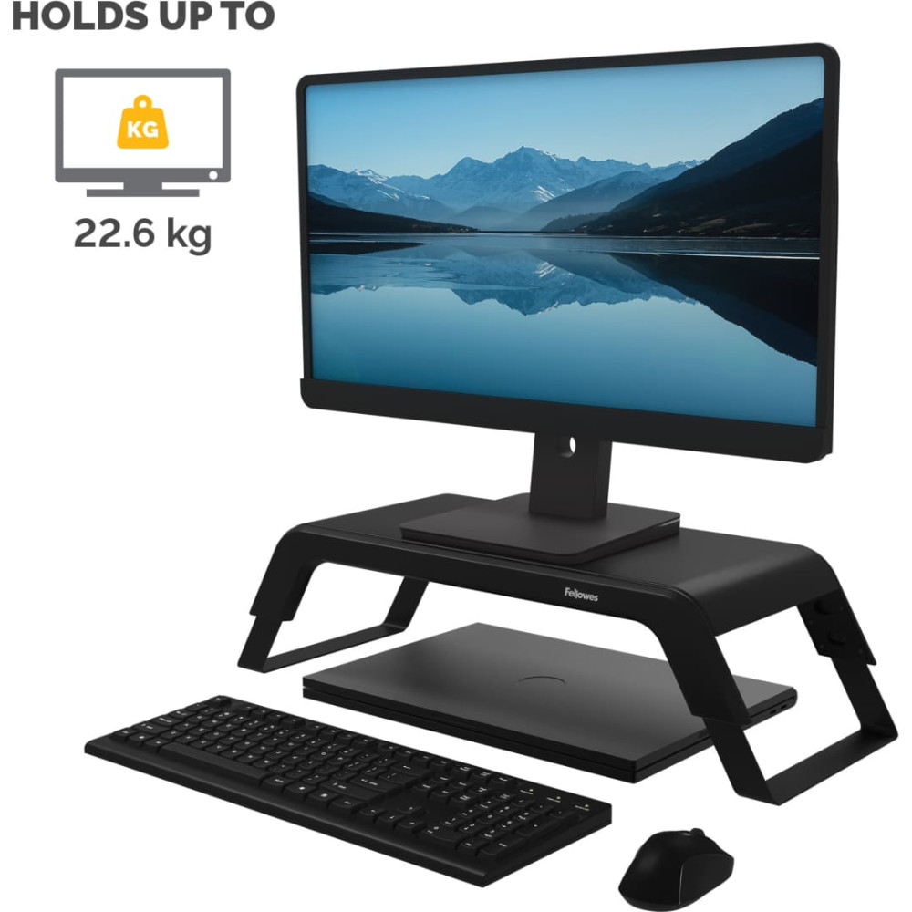 Fellowes Hana LT Monitor Support Black. Montāža: Brīvi stāvošs, Maksimālais svars (tilpums): 22,6 kg. Augsta koriģēšana. Produkta krāsa: Melns