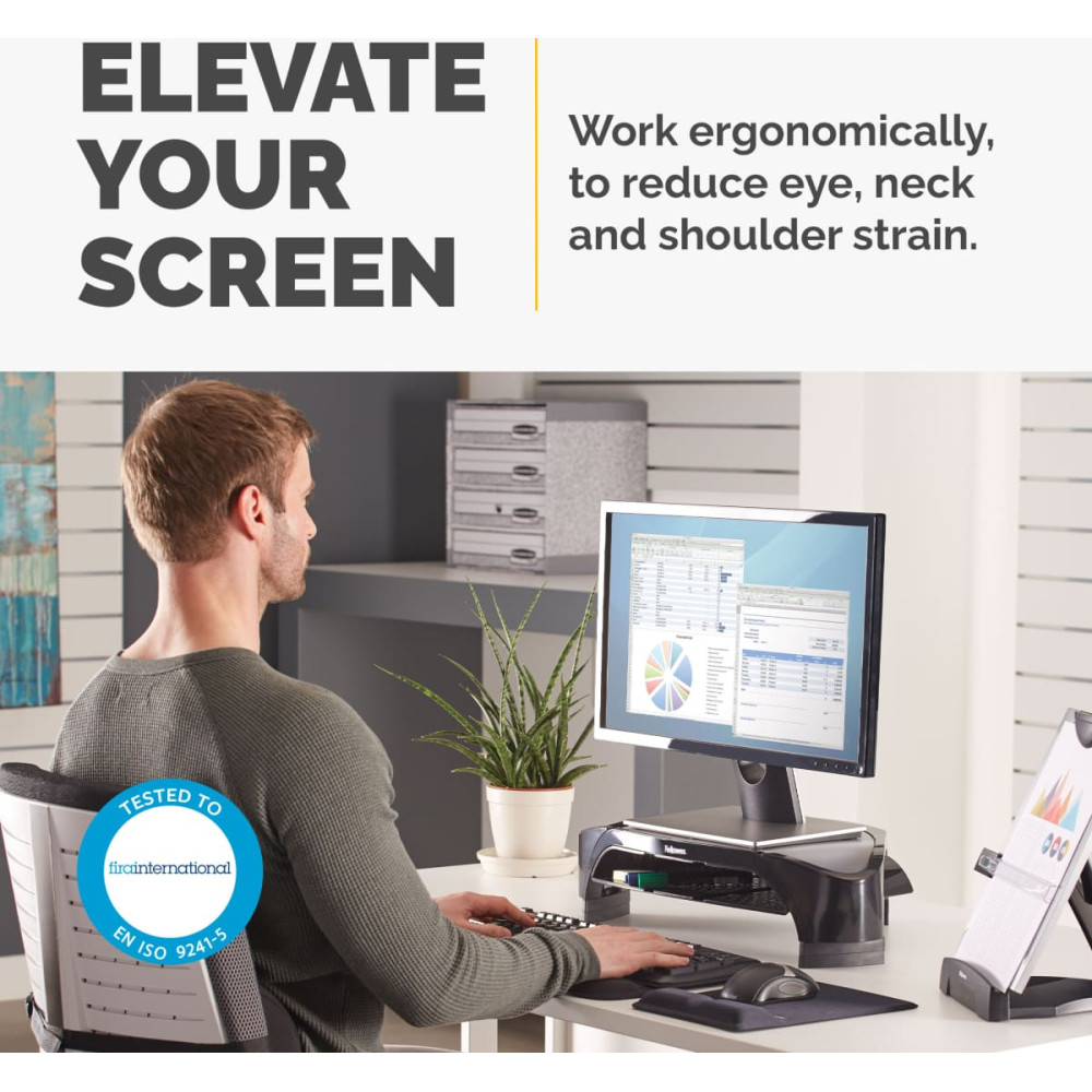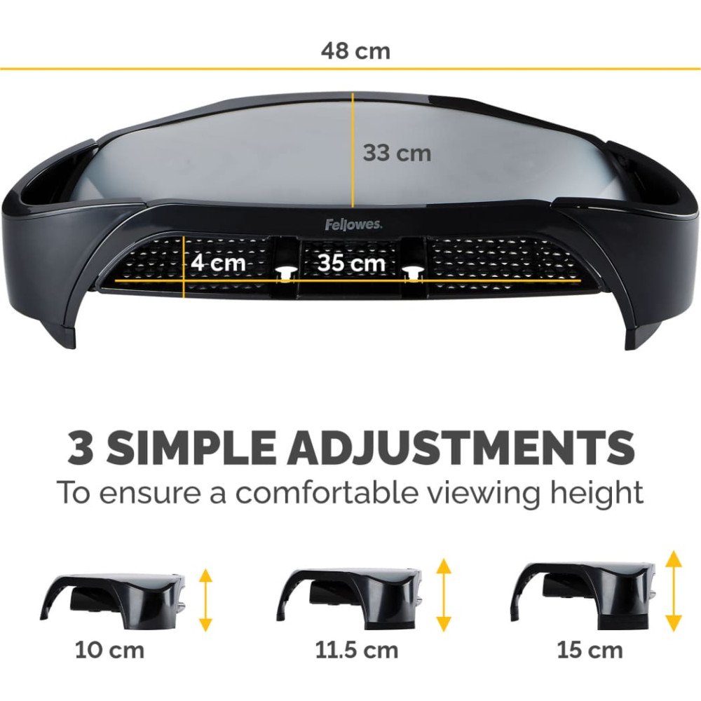 Fellowes 8020801. Montāža: Brīvi stāvošs, Maksimālais svars (tilpums): 10 kg, Maksimālais iespējamais ekrāna izmērs: 53,3 cm (21"). Augsta koriģēšana. Produkta krāsa: Melns