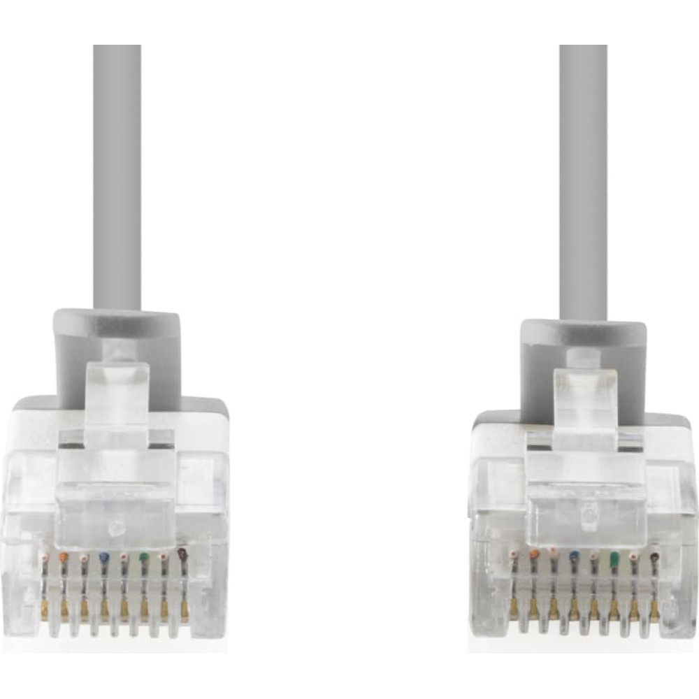 | CAT 6 U-UTP slim patch cord, Cu, LSZH AWG 32/7, length 0.3m, Grey Future-proof standard and reliable CAT 6 performance for your network. Advantage: Slim cable diameter of 2.7 mm with high flexibility for easy installation in confined spaces Features: Transmission speed up to 1 Gbit/s and frequency 250 MHz Application area: Ideal for office networks, home use, patch panels and environments with high cabling density PoE-capable: Supports PoE and PoE+ applications with pure copper conductors DIGITUS® CAT 6 U-UTP Slim patch cables with a transmission frequency of up to 250 MHz are equipped with a reduced outer diameter of only 2.7 mm and a flexible jacket, which enables space-saving and versatile use in any network. The cables have stranded AWG 32/7 copper conductors and an unshielded twisted pair structure (U-UTP), which ensures flexibility and durability. They are manufactured in accordance with ISO/IEC 11801 and DIN EN 50173 CAT 6 standards, ensuring reliable compliance with international specifications. Each cable is equipped with a molded anti-kink sleeve with strain relief and a locking lever protection that prevents cable damage and locking breaks. These slim patch cables are supplied in DIGITUS® hangtag packaging and are the ideal solution for structured cabling in offices, homes or high-density environments. Configuration: 1:1 Category: CAT 6 Shielding: U-UTP, unshielded Length: 0.3 m Color: grey Jacket: LSOH Slim Version: true Flat Version: false Outer casing: LSZH (Low Smoke Zero Halogen) Total diameter: 2.7 mm ± 0.15 mm Stranded wire: AWG 32/7 bare copper, 0.08 ± 0.005 mm Insulation: HD-PE (high-density polyethylene) Bending radius: 15x outer diameter Plug: RJ45 plug Color code: Orange x white, green x white, blue x white, brown x white Cabling standard: EIA/TIA 568B PIN assignment: 1:1 Contact resistance: maximum 376.96 ?/km at 20 °C Imbalance of the resistance: maximum 3 % Operating temperature: -20 °C to +60 °C Flame retardancy: IEC 60332-1 Smoke emission: IEC 61034 Typical applications: IEEE 802.3: 10BASE-T; 100BASE-T; 1000BASE-T Standards: ISO/IEC 11801-1; EN-50173; ANSI/TIA 568-C; EN 60603-7-4 Dielectric strength: 500 V alternating current for 1 minute without breakdown (TIA/EIA-364-21) Service life: 750 mating cycles Packaging: DIGITUS hangtag |