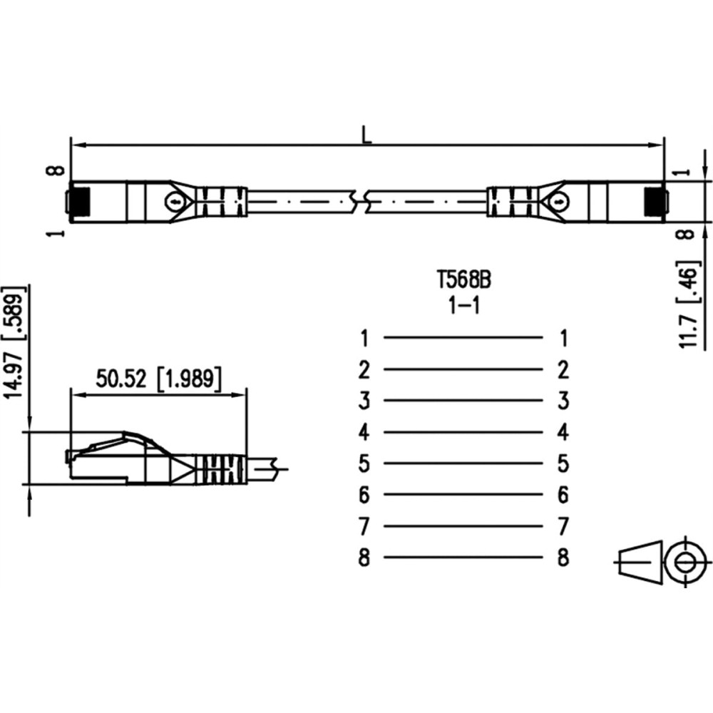 • two shielded RJ45 plugs, wiring 1 - 1
