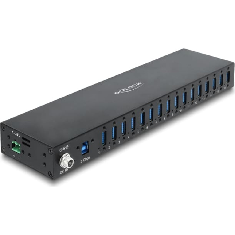 Delock Industry Hub 16 x USB 5 Gbps Type-A with 8 kV ESD protection and DIN rail mounting