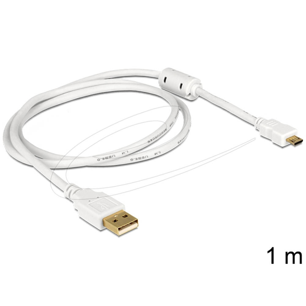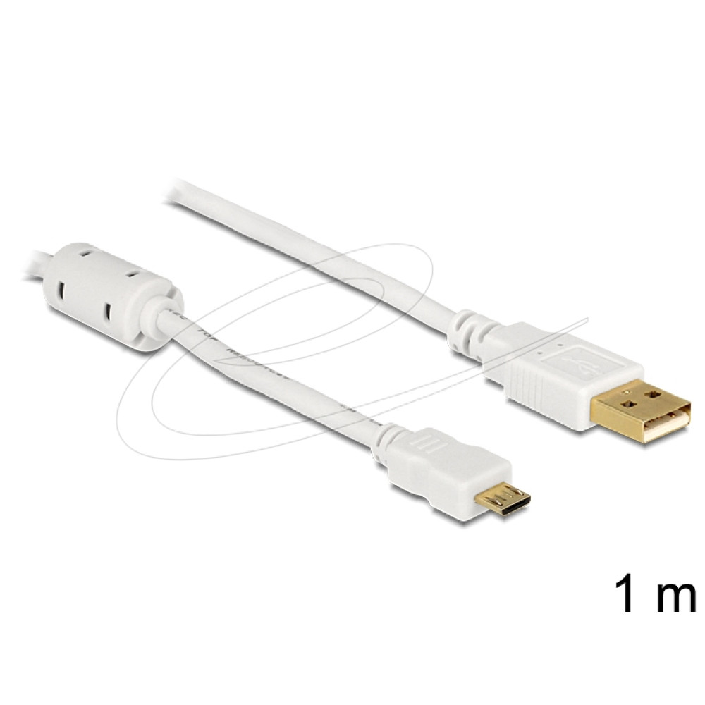Kabelis USB2.0 AM > USB microBM, ar ferītu, 1m, balts