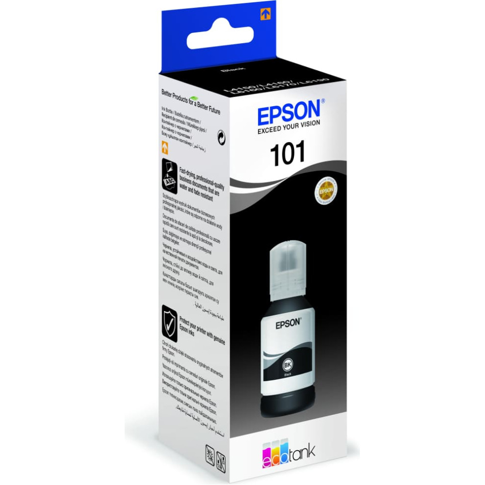 Epson 101 EcoTank Black. Melnās tintes tips: Pigmenta tinte, Melnās tintes tilpums: 127 ml, Drukājamās krāsas: Melns, Skaits iepakojumā: 1 pcs