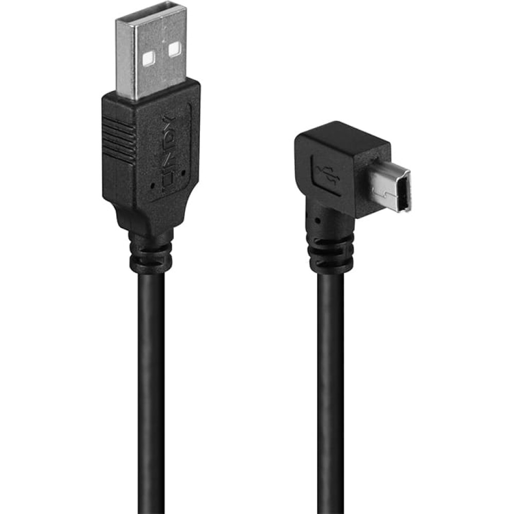 Lindy 0.5m USB 2.0 Type A to Mini-B Cable, 90 Degree Right Angle
