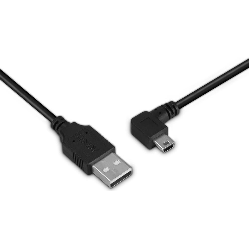 Lindy 1m USB 2.0 Type A to Mini-B Cable, 90 Degree Right Angle
