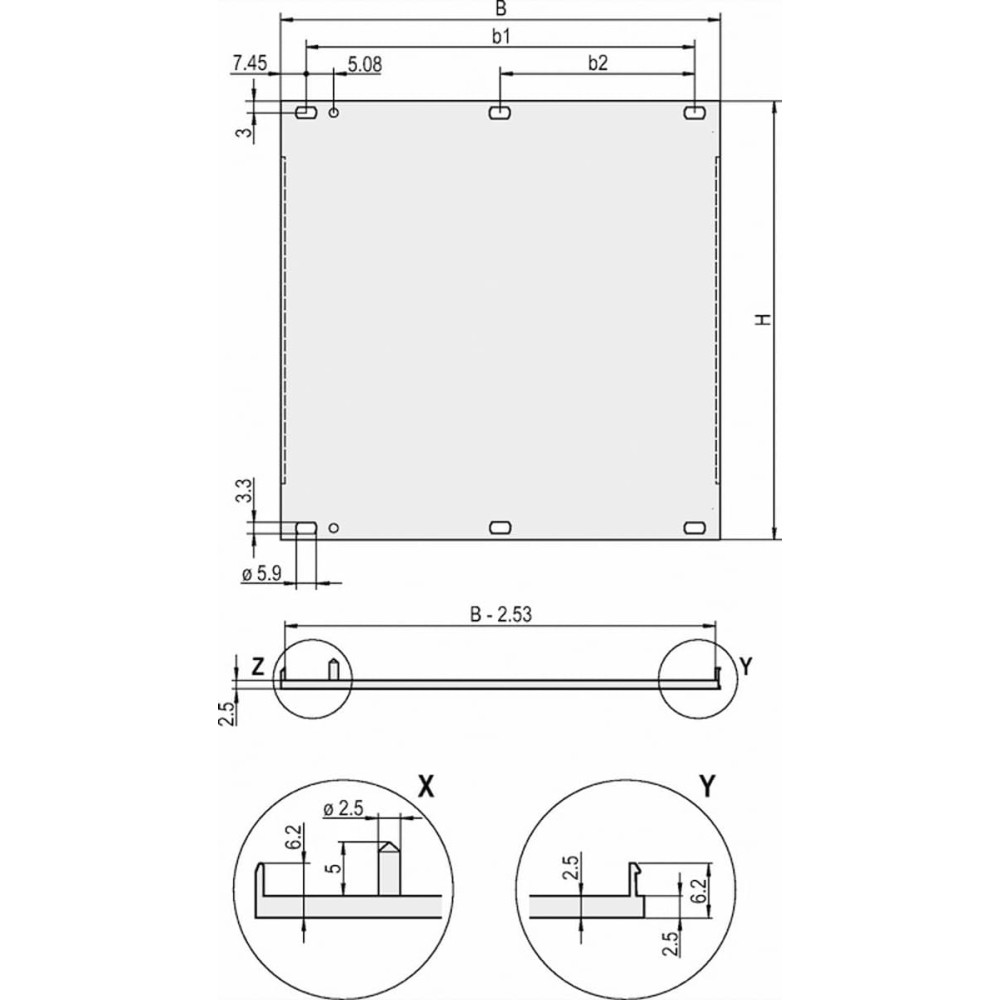 Schroff Front Panel, U-profile, Refrofit Shielding, 6 U, 84 HP, 2.5 mm, Al, Front Anodized, Rear Conductive