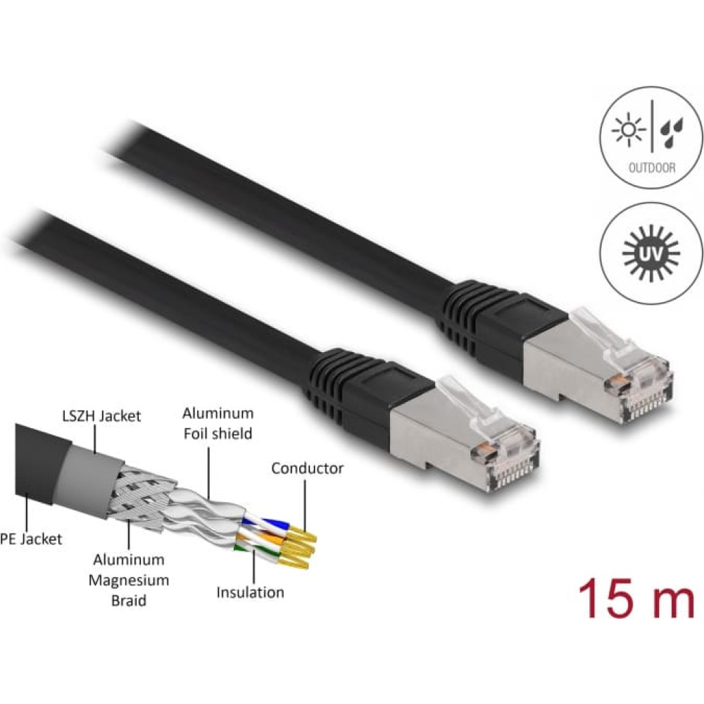 Delock RJ45 Network Cable Cat.6A S/FTP PE Outdoor 15 m black