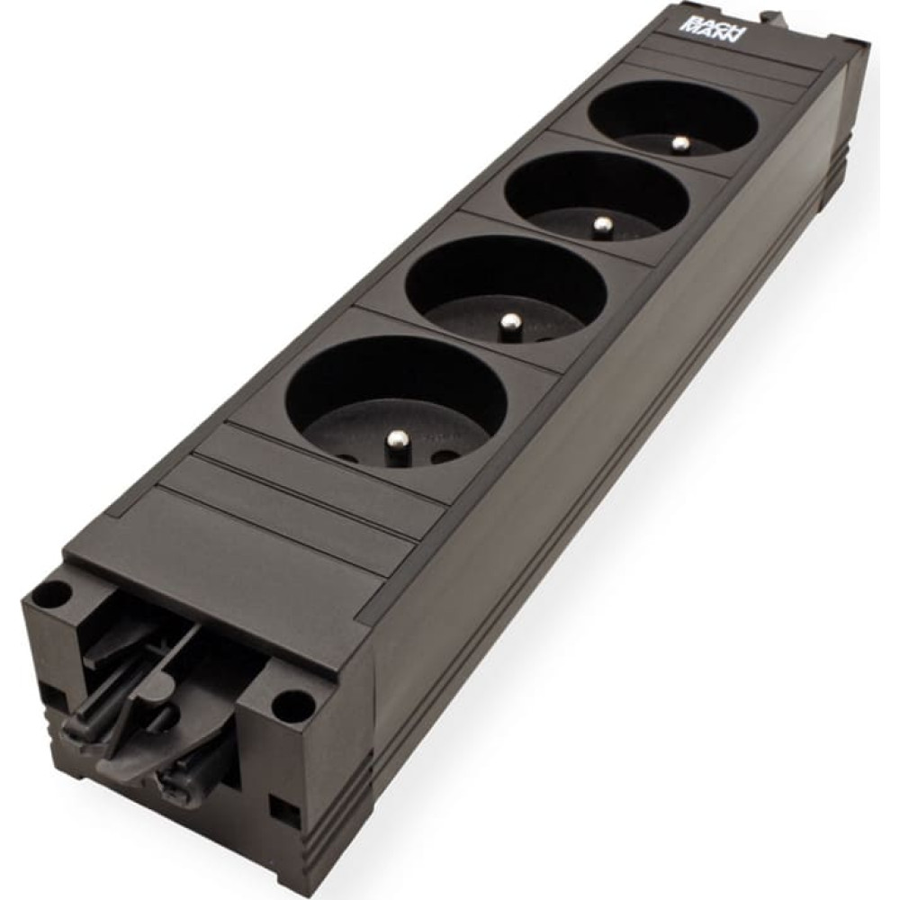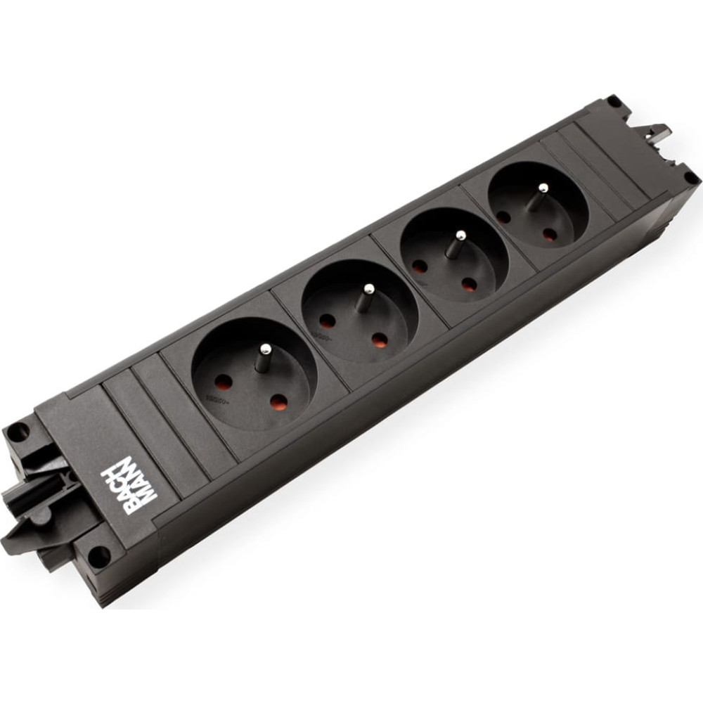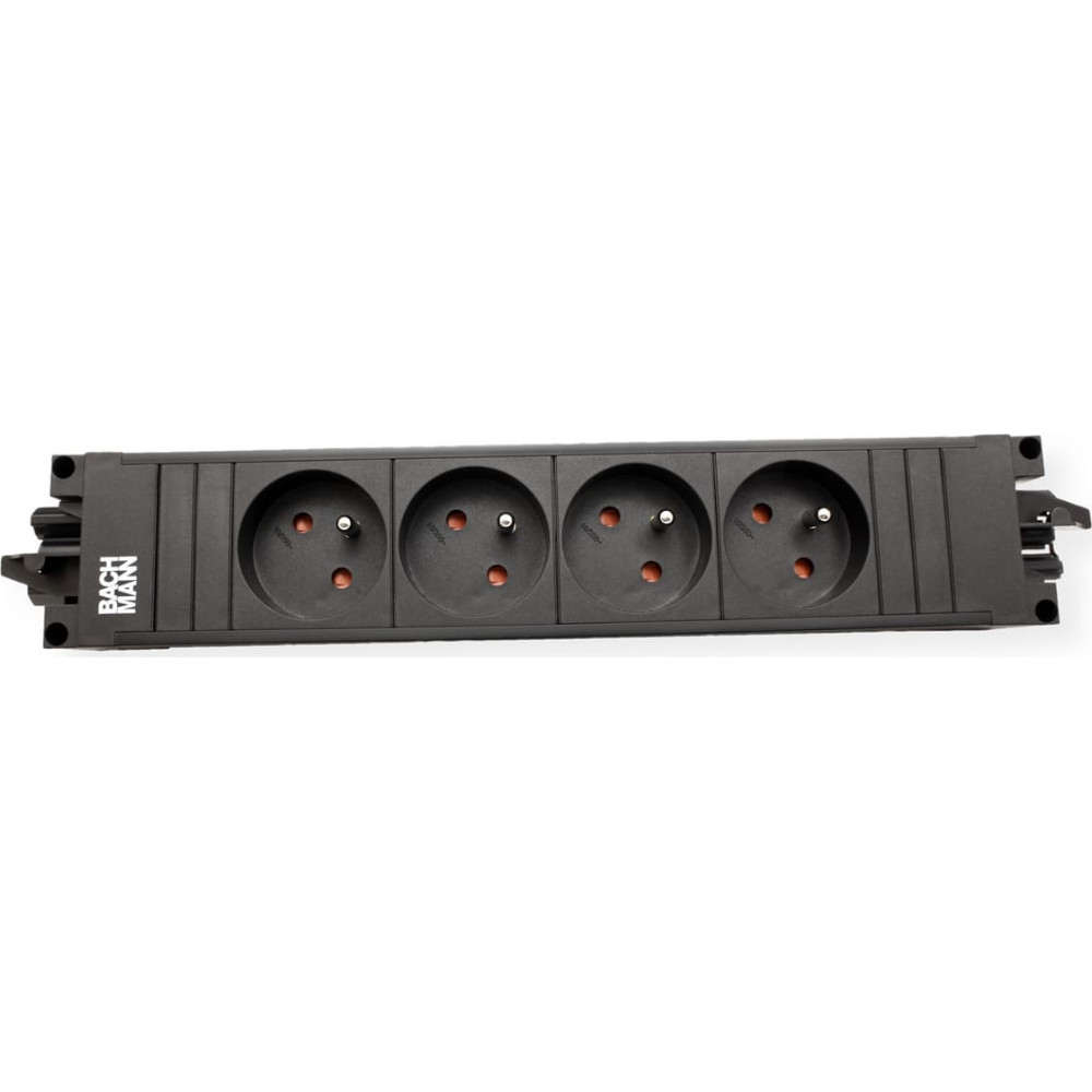 STEP BASE socket strip plastic profile black with enhanced touch protection 4xUTE socket outlets France black Power input and output GST18 with BACHMANN logo packed in a box