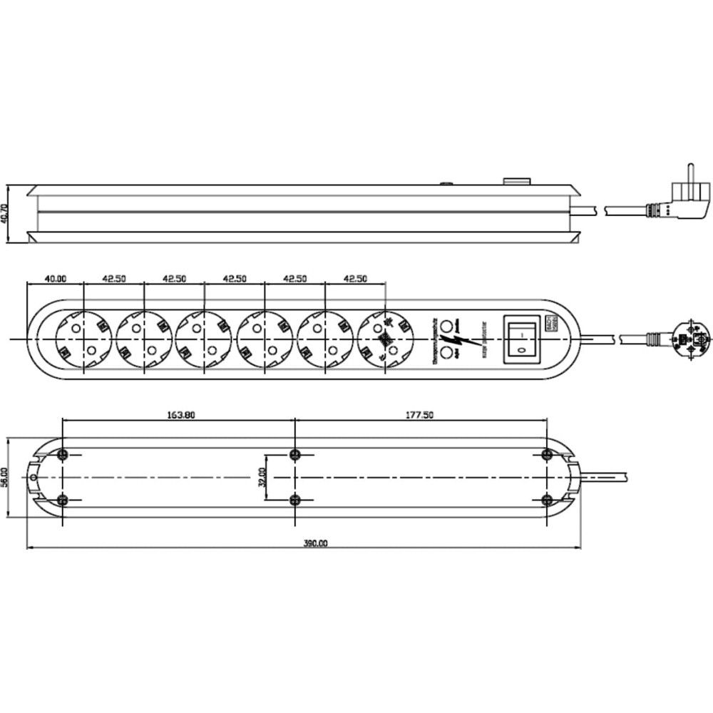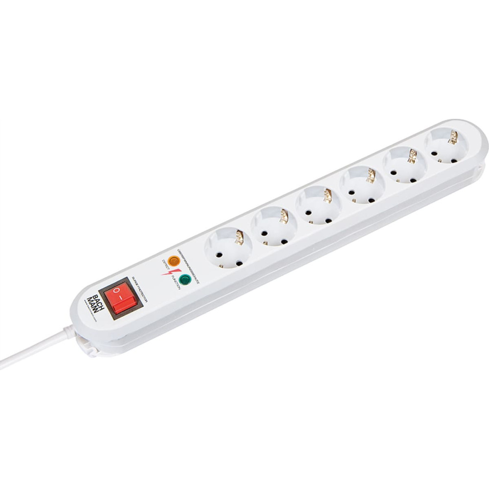 Bachmann SMART stekkerdoos 6x geaard contact, schakelaar, overspanningsbeveiliging, white, 1.5 m
